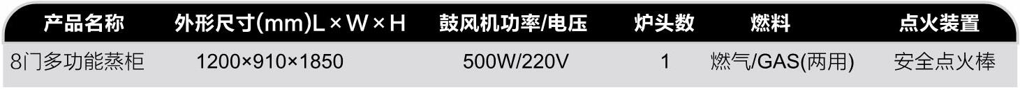 每个柜胆都可放置多款标准的蒸具如:12寸以下的蒸笼、盘碟1/2NG、1/1NG、2/1NG盆等一机多用,维修简洁方便;