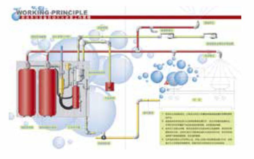 厨房烹饪设备自动灭火系统的功能:由于厨房火灾通常是高闪点(315-450度)的食用油燃烧,其火灾特点为:火势扩大速度快,热容量大,烟道火灾隐蔽性强扑救困难;因而快速扑灭火焰是扑救厨房火灾的难点之一,抑制复燃是扑救厨房火灾的难点之二,遏止烟道火灾的蔓延是扑救厨房火灾的难点之三。