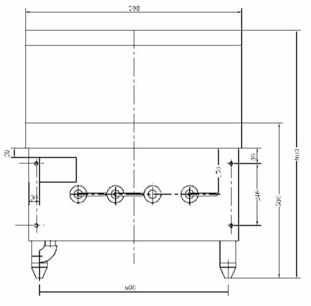 (1)炉台面与支架之间采用20mm厚纤维毯做隔热绝缘;台面向前倾斜,前端有集水槽,并配有过滤篦子,集水槽左端配有50mm排水接口。